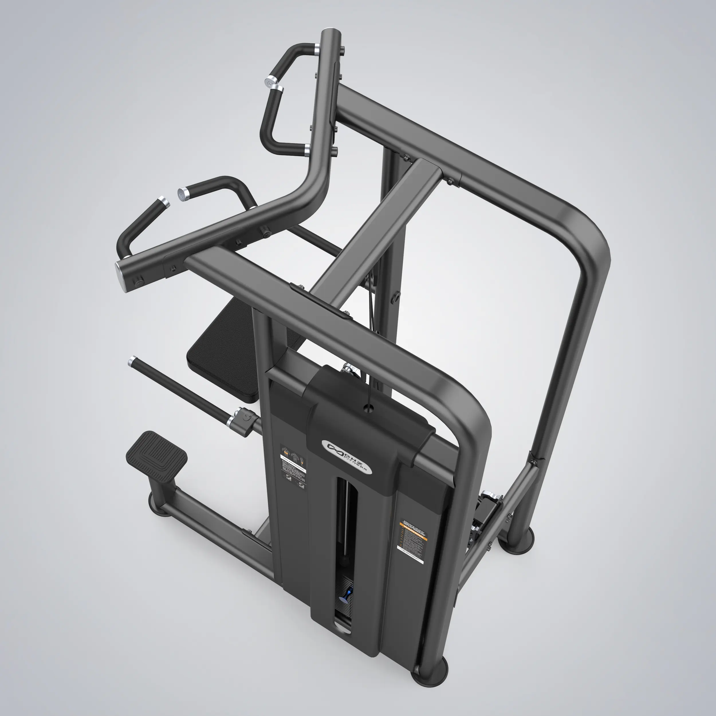 The Alien Series Dip/Chin Assist is a mature dual-function system. Large steps, comfortable knee pads, rotatable tilt handles and multi-position pull-up handles are part of the highly versatile dip/chin assist device. The knee pad can be folded to realize the user’s unassisted exercise. A more reasonable placement of weight stacks and training areas improves the overall stability and ease of use of the equipment.